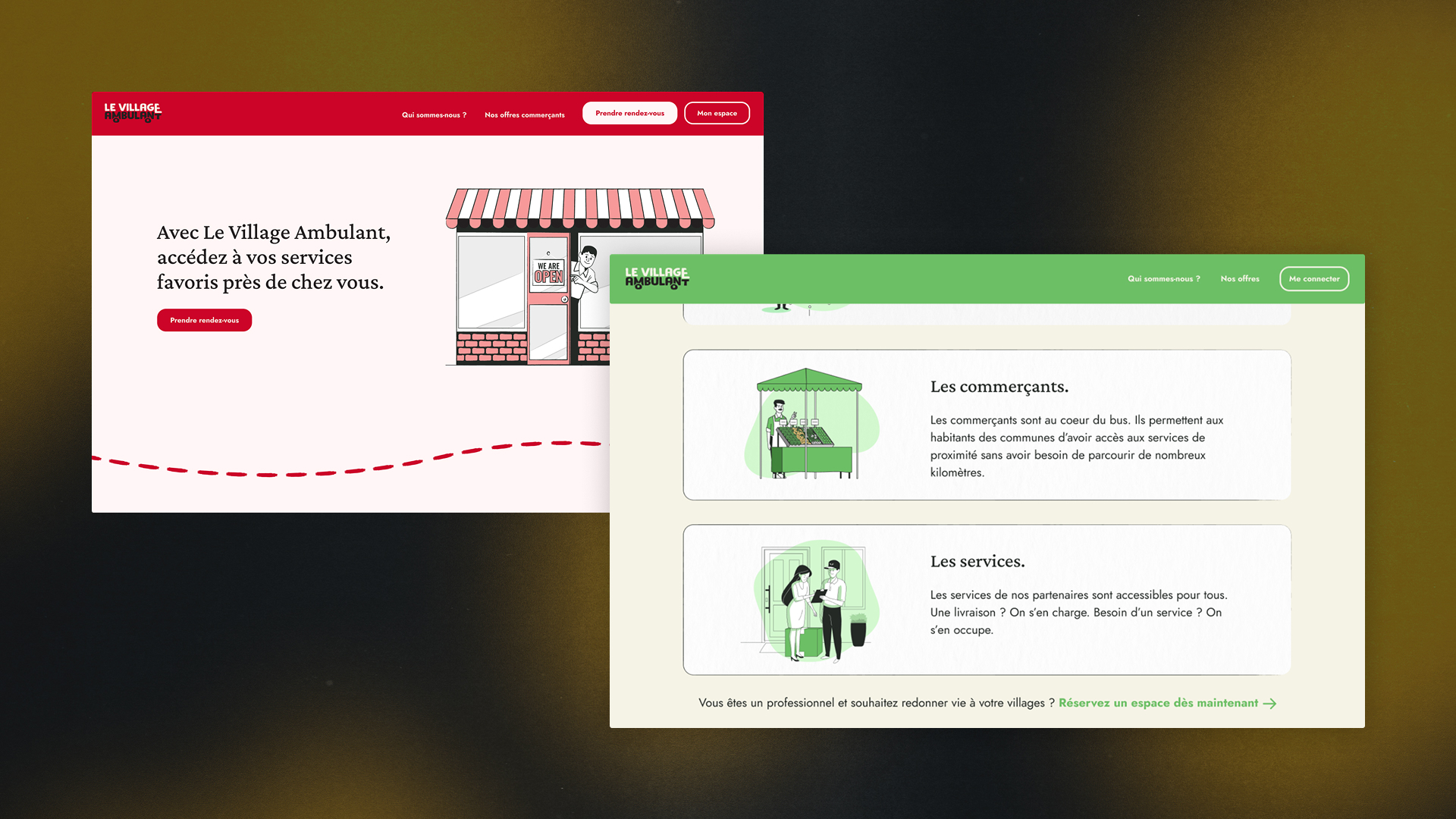 Le Village Ambulant est un dispositif mobile conçu pour créer des espaces de rencontre temporaires dans différents lieux d’un territoire. Pensé comme une structure transportable et modulable, il peut s’installer rapidement dans un quartier, une place ou un espace public afin d’y activer de nouveaux usages. Les citoyens peuvent y réserver un créneau, un locker, un rendez-vous… via la plateforme dédiée et les acteurs peuvent louer un emplacement dans le bus via l’accès « professionnel » de la plateforme.