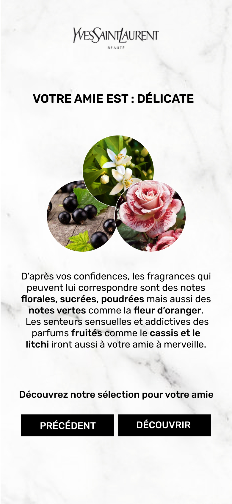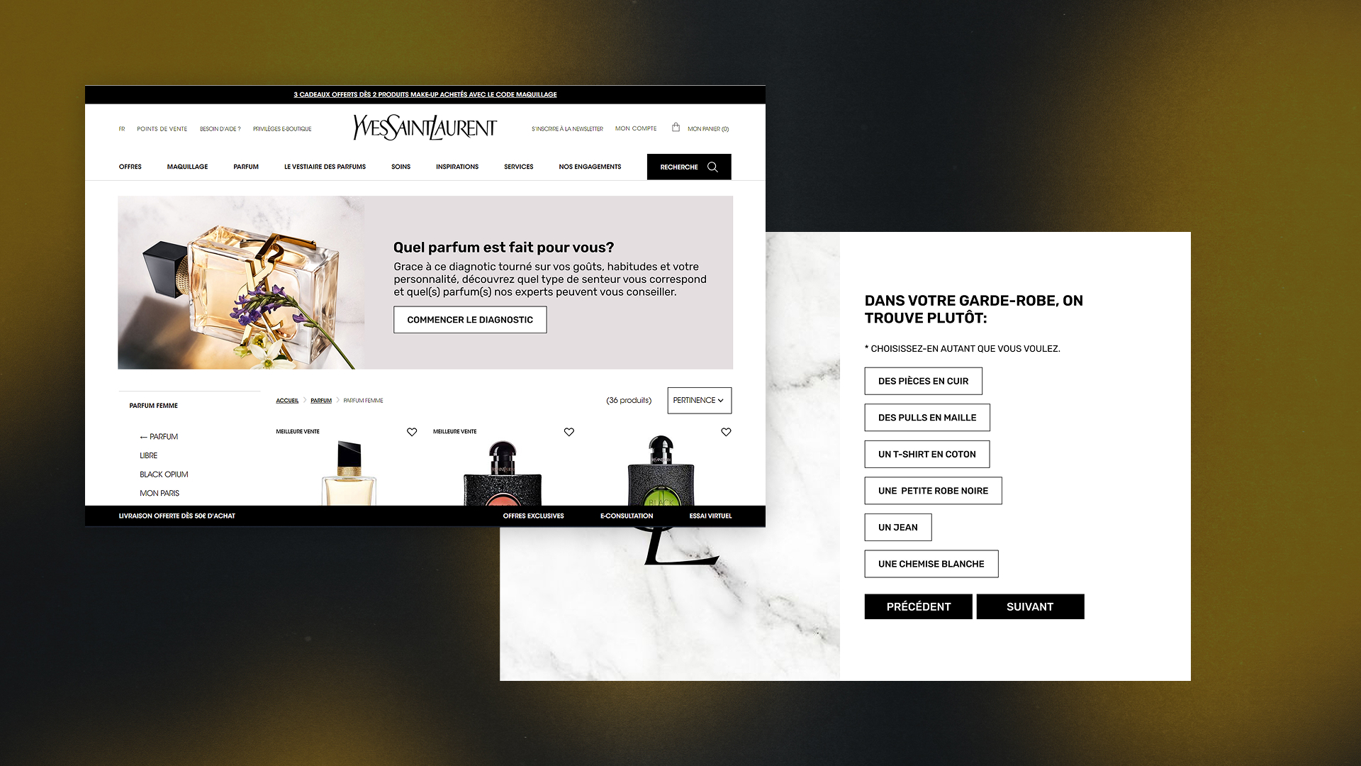 L’expérience débute avec un diagnostic parfum en ligne qui identifie les préférences du client et lui propose une sélection personnalisée de produits. Les résultats sont enregistrés dans un compte client et accessibles via un QR code.